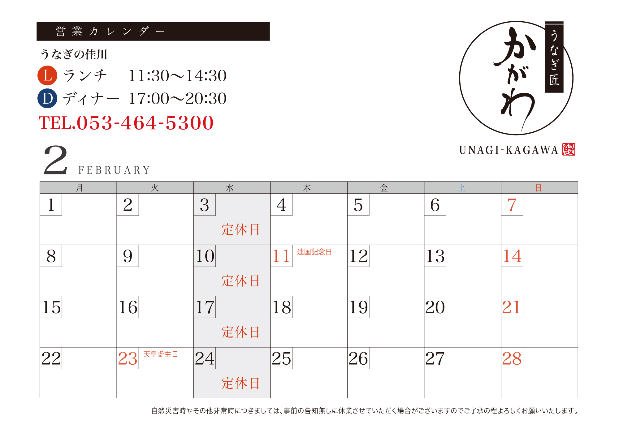 2月の営業日時につきましては、下記のチラシに詳細を掲載しております。