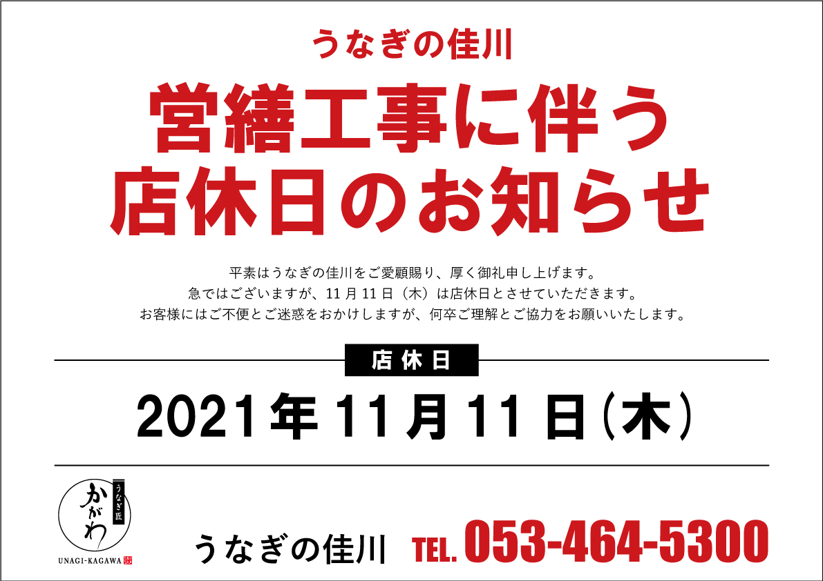 急ではございますが、11月11日(木)は店休日とさせていただきます。