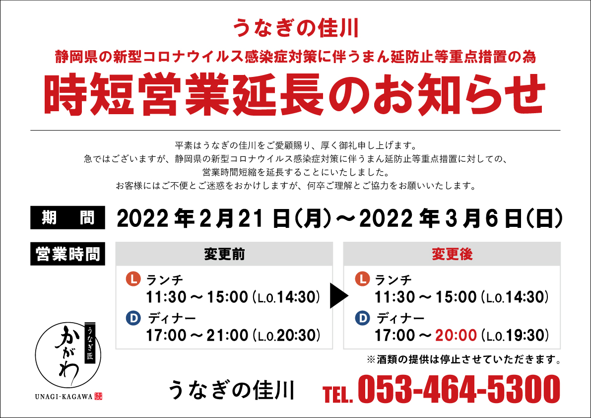 時短営業延長のお知らせ