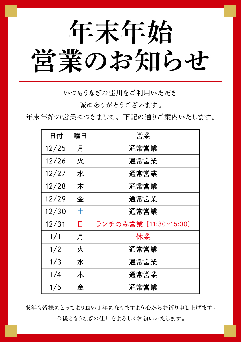 いつもうなぎの佳川をご愛顧頂きましてありがとうございます。