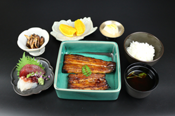 蒲焼 ( 二切 )・刺身・肝焼・御飯・吸物・新香・デザート