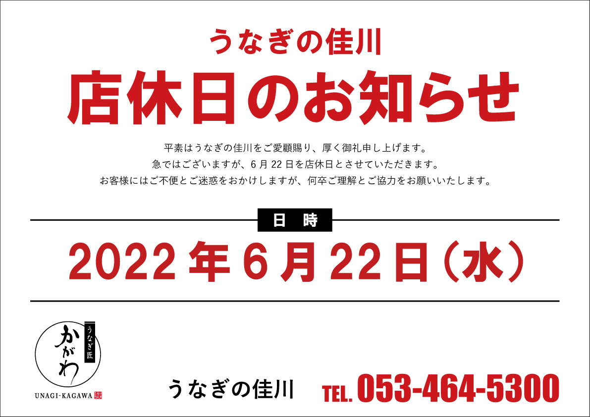 いつもうなぎの佳川をご愛顧頂きましてありがとうございます。
