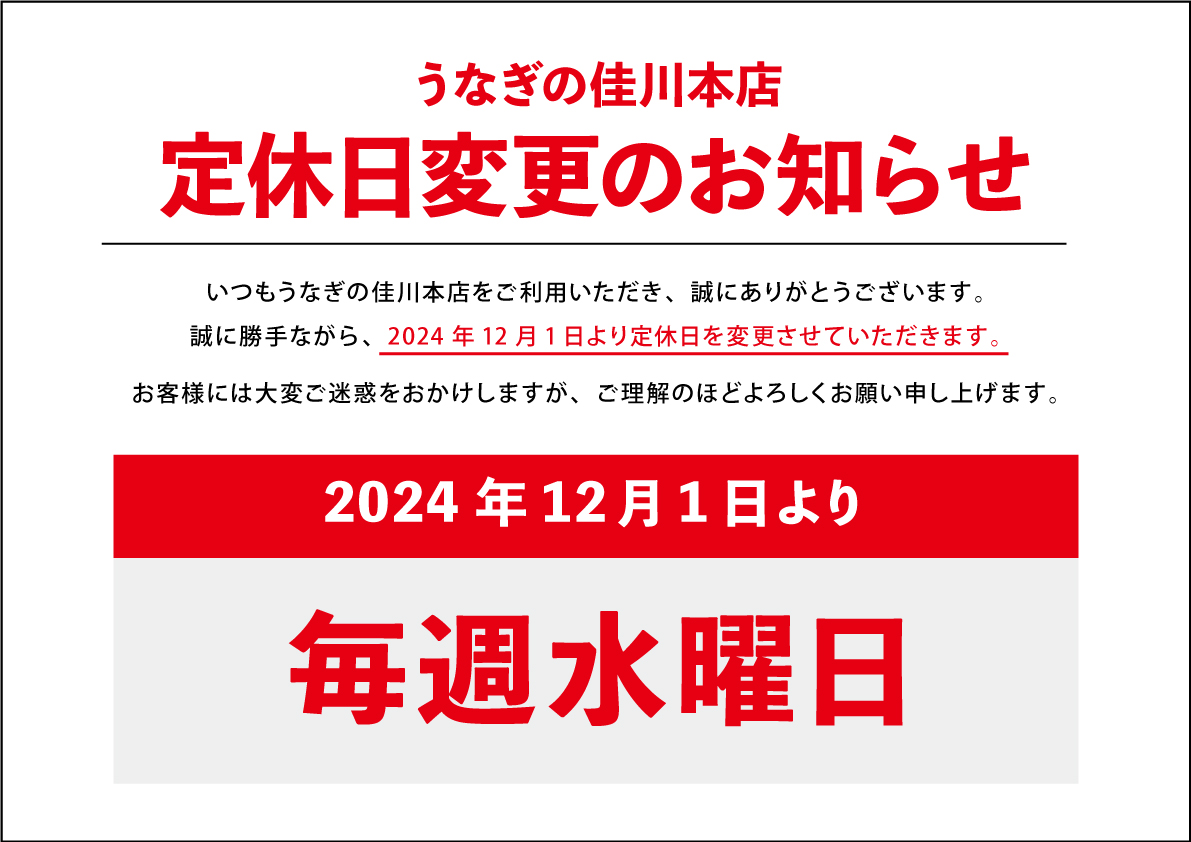 【本店】定休日変更のお知らせ