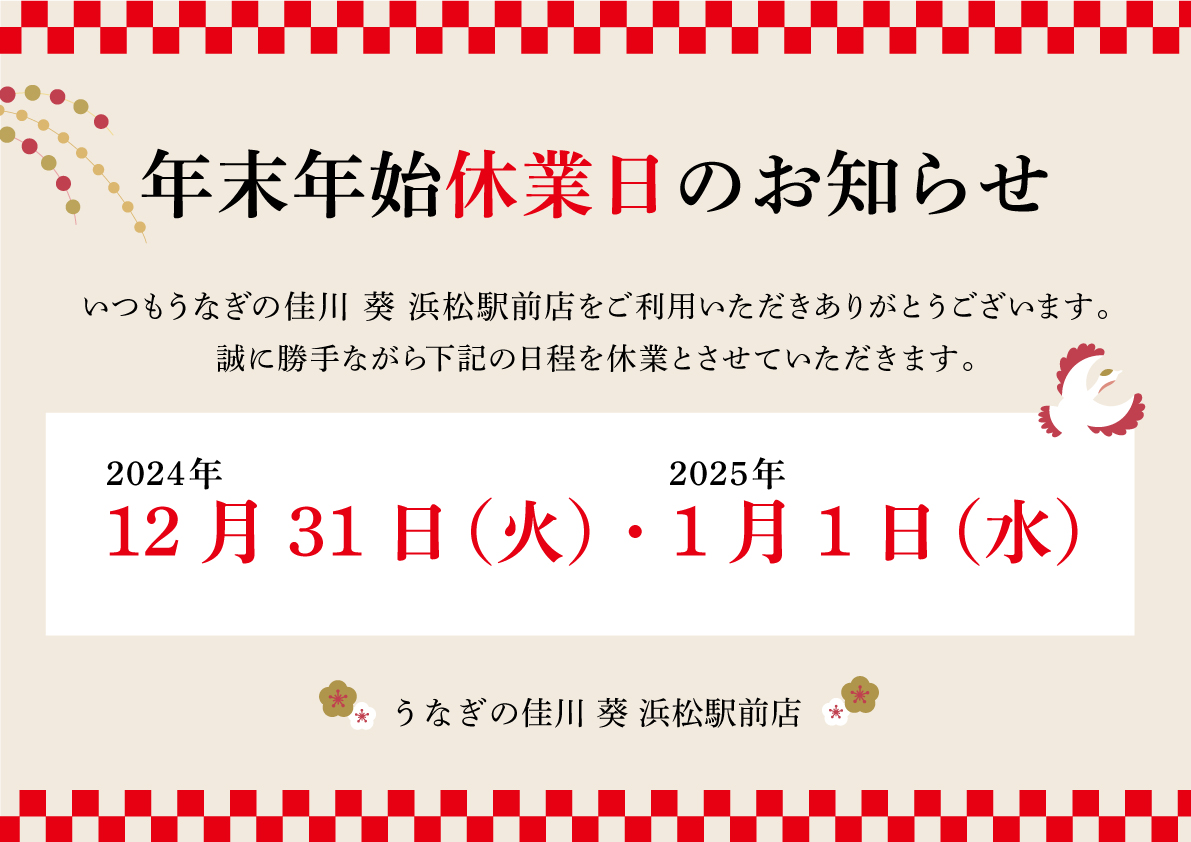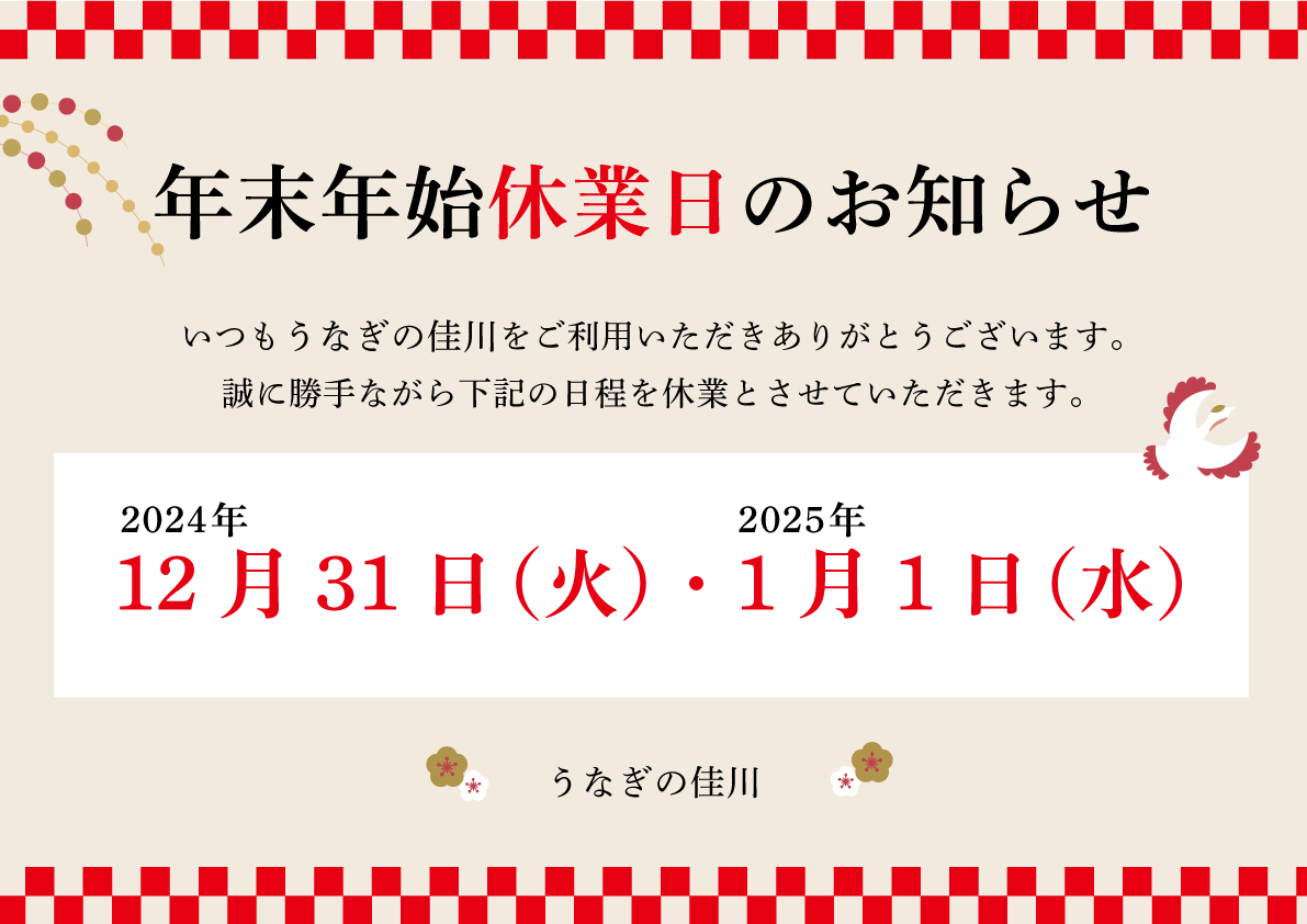 年末年始休業のお知らせ